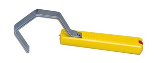 - The cable to be stripped is positioned by a guiding vee with return spring.